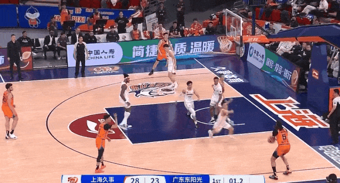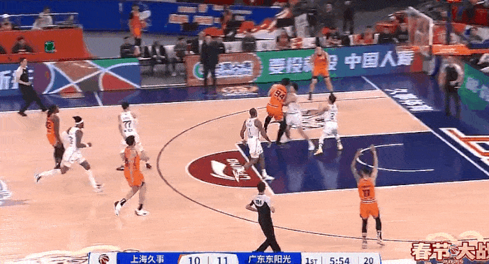 要花了?刘铮底角空位接球三分再中,上海领先19分打停广东