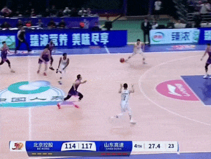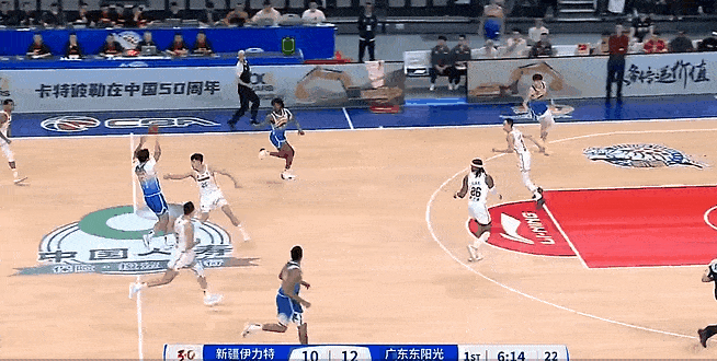 徐杰加速突破上篮后再助攻胡明轩命中三分,广东领先32分
