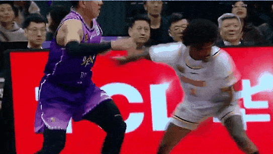 古德温和金鑫卡位时互相拉拽后倒地,裁判回看吹罚双方犯规