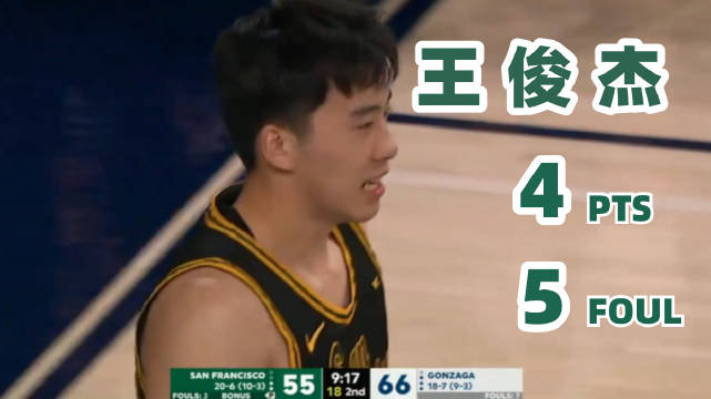[集锦]防守问题明显!王俊杰面对冈萨加大学21分钟4分5犯规
