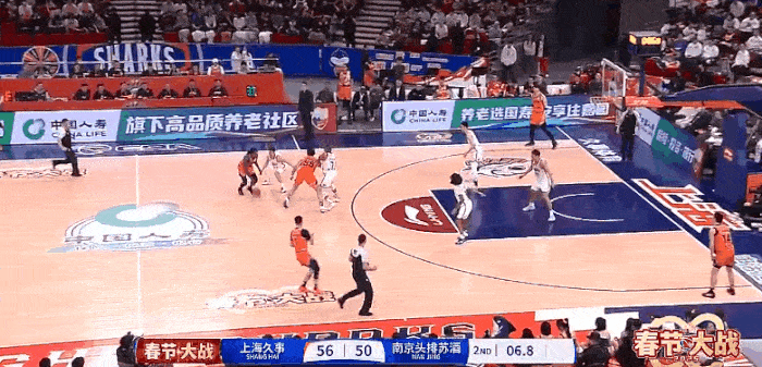 完美战术!布莱索妙传助攻王哲林轻松上篮,上海半场领先8分