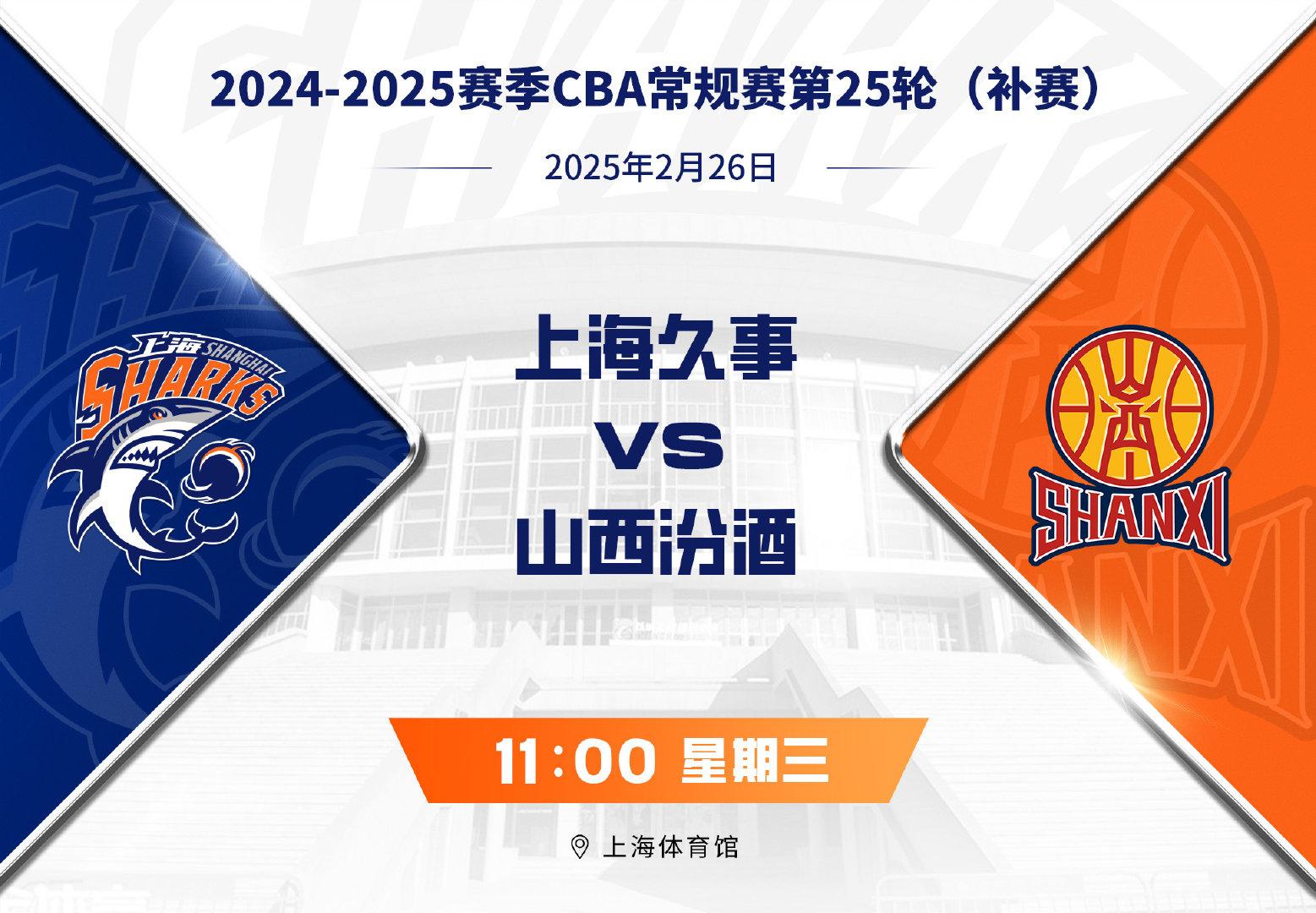 中午11点的比赛!上海男篮官方分享与山西的25轮补赛前瞻