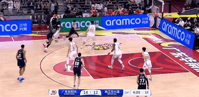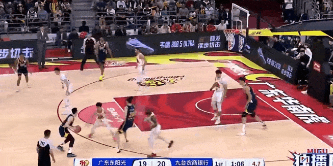 任骏飞对抗上篮打成2+1后再助胡明轩空切上篮,广东反超比分