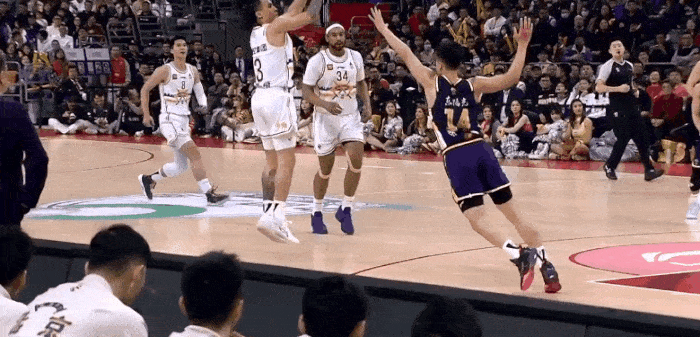 打开心了!贝兹利迎着萨林杰干拔三分命中,广东再领先10分
