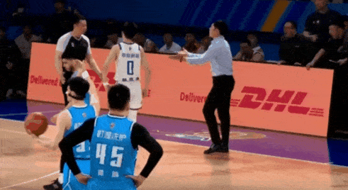 张庆鹏对裁判判罚持续表达不满,领到一个技术犯规