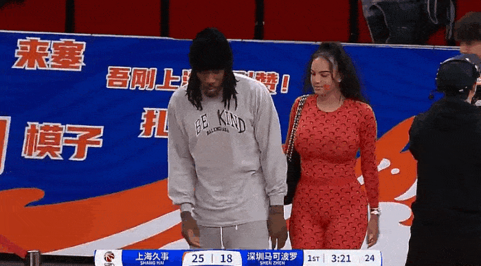 布莱索今日携带妻子来到场边观战上海队比赛