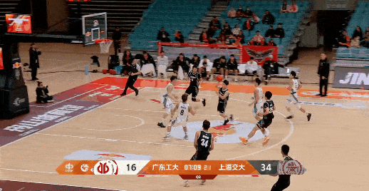 顿家威三分命中,上海交大一波7-0已领先广东工业大学21分