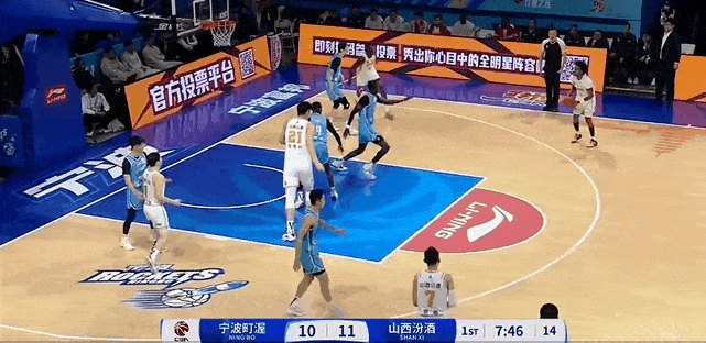 陈彭宇迪和刘传兴连续二次进攻得分,山西前场板8-1领先宁波