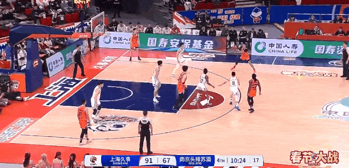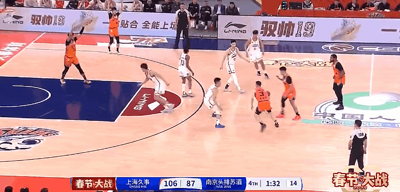 全队爆发!李添荣接球三分也进,上海再次拉开领先南京27分