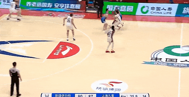 接管比赛!布莱索对抗后高难度抛投打进,上海领先新疆10分