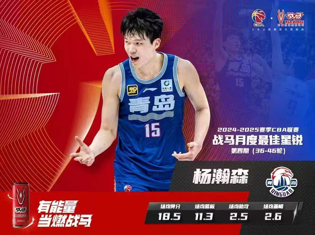 场均15+10!CBA官方:周琦当选第四期月度最佳国内球员