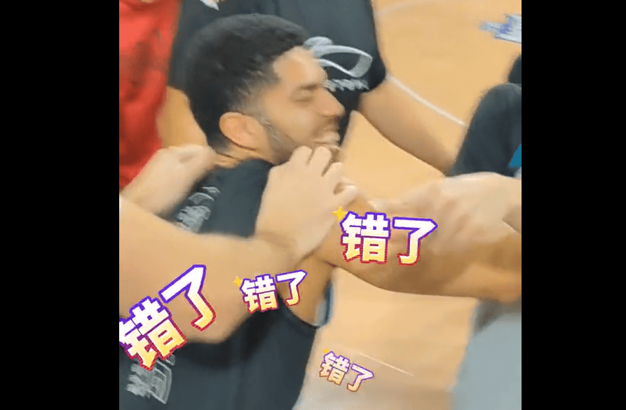 李文昊被崔晓龙撞飞到界外非常痛苦,崔晓龙被吹违体犯规