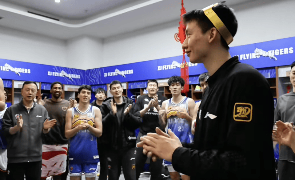 生日快乐,继续成长!新疆男篮赛后全队为杨芮庆生