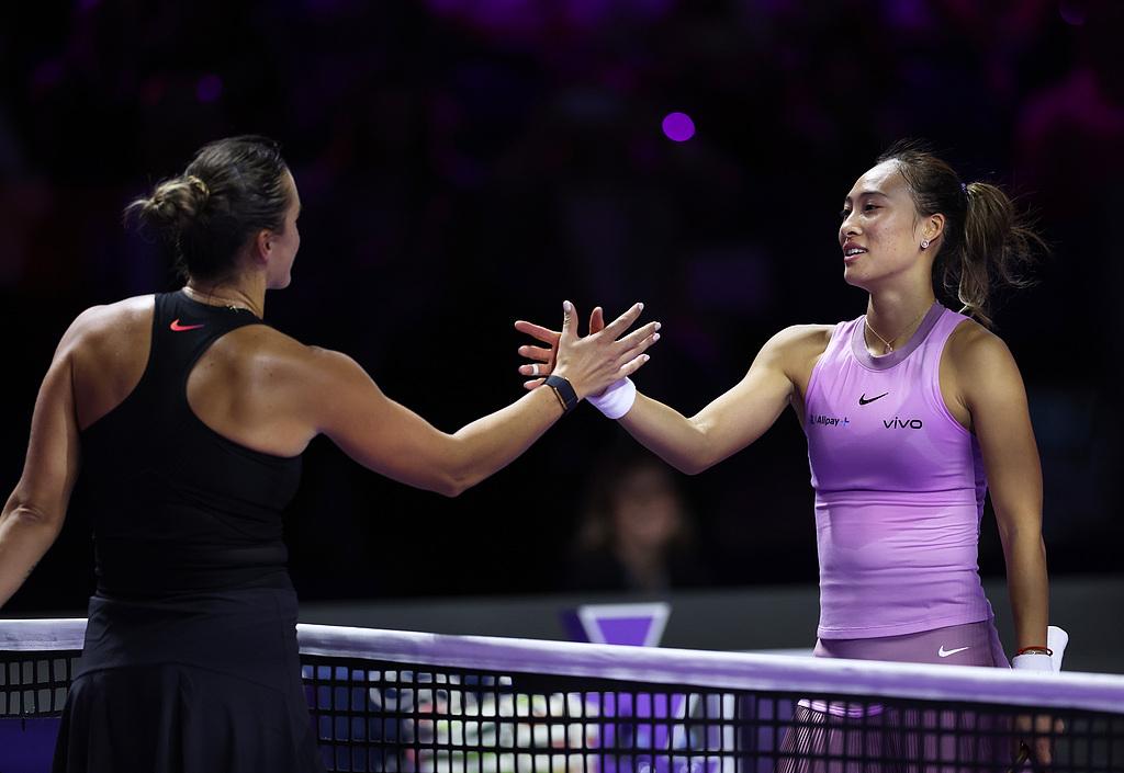 四两拨千斤!郑钦文写意反拍回球赢得萨巴伦卡掌声