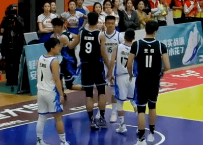 马明坤张弓搭箭自信出手,球在篮筐上转了两圈落袋