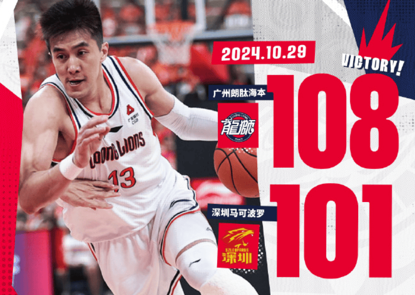 粤A胜!广州男篮官方分享战胜深圳男篮全场比分海报
