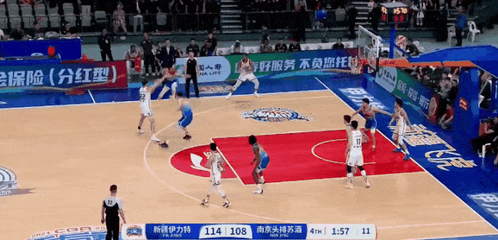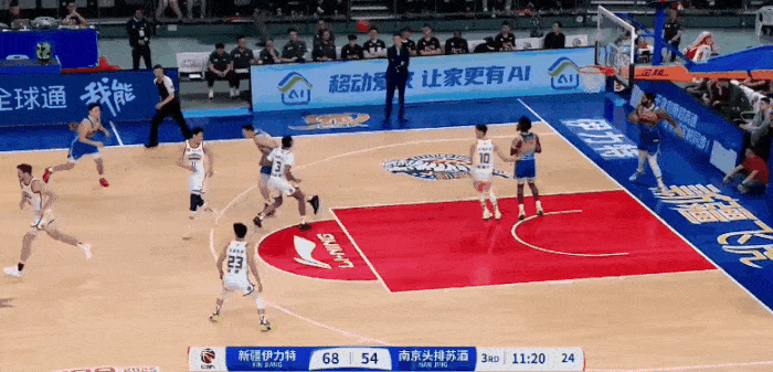 王哲林反击接球上篮再中,上海3分钟一波18-0反超7分