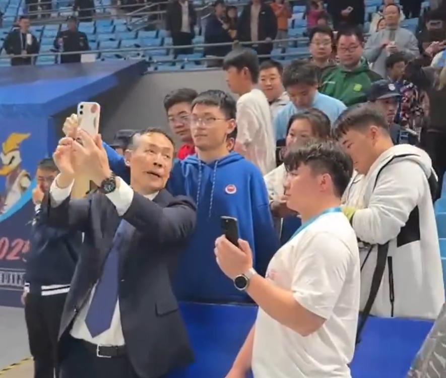 赛后球迷等着许利民指导签名合影,许指导也尽可能满足愿望