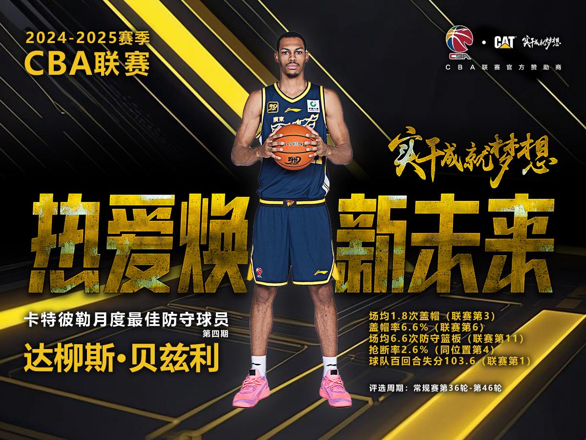 场均1.8盖帽!官方:贝兹利荣获CBA第四期月度最佳防守球员