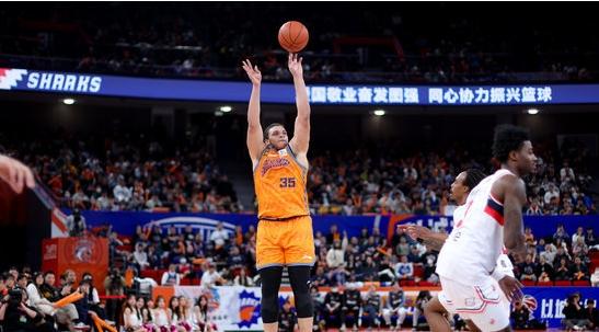 球进灯亮!基兹林克迎着两人强投命中压哨三分,吉林追至3分