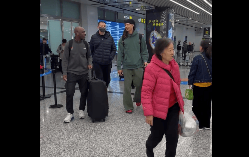 明天对阵新疆男篮加油!上海男篮全队今晚已落地机场