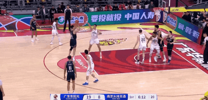 杜润旺底角三分命中首节得到11分,广东已经21-8领先南京