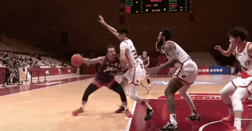张镇麟接球出手三分出界耗时,比赛还剩0.5秒上海后场球