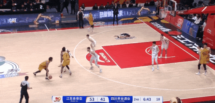 火力全开!倪永康底角三分压哨命中,江苏首节37-29领先四川