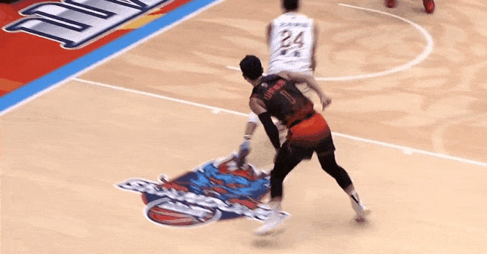 李炎哲接球疑似脚下被绊到摔倒出界,张镇麟友好上前拉起