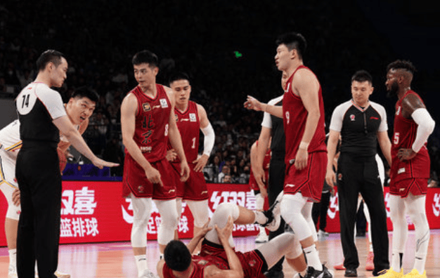 虎扑萨林杰先与艾孜麦提缠斗被吹犯规,随后再造成李炎哲第6犯规