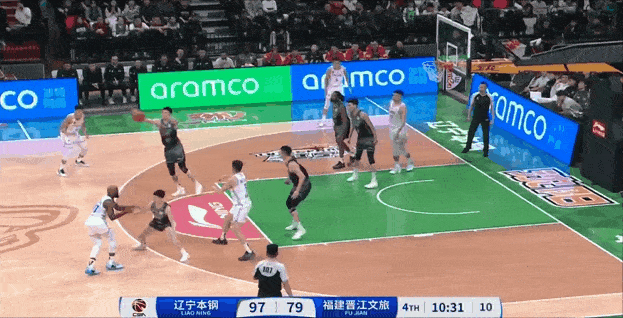 付豪抛投被斯蒂尔干扰未能命中,抢到前场篮板后上篮打进