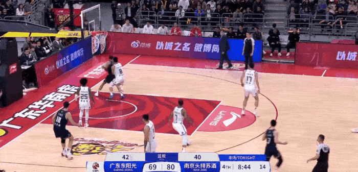 南京大比分落后广东摆出全华班,随后进攻未果又换上利夫
