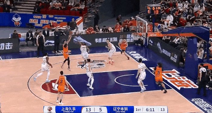 张镇麟反击接球双手挂框飞扣,辽宁已经领先广州17分
