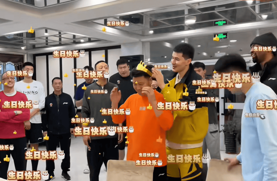 生日快乐!新疆男篮分享为助教姜正秀庆生画面