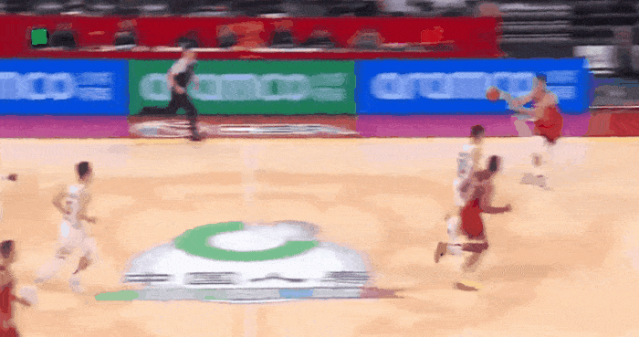 状态不错!阿不都沙拉木全场10中4,得到15分9板3助攻3抢断