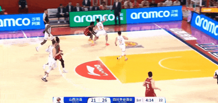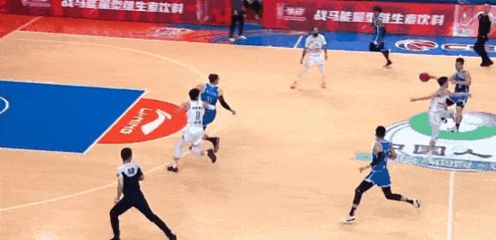 胡明轩后场长传助攻贝兹利快攻暴扣,后者已得到12分9板3助