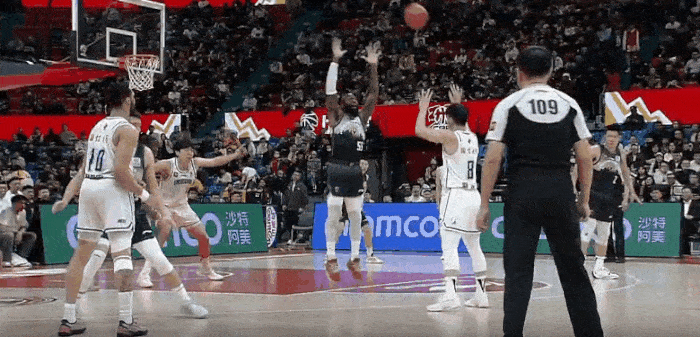 琼斯还剩3秒传给崔晋铭,后者超远出手投进压哨三分追至5分