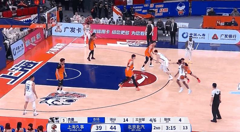 虎扑洛夫顿突破迎着周琦打成2+1已得37分,上海追到2分