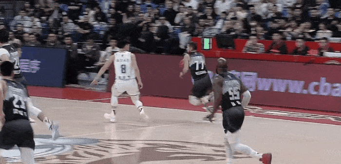 徐杰篮下连续转身抛投打进,上半场11中3得到10分3篮板2助攻