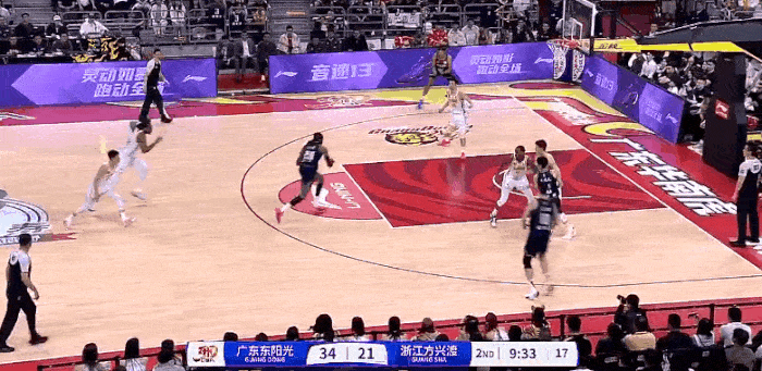 赵继伟连续投进两记三分,辽宁开局15-8领先广州