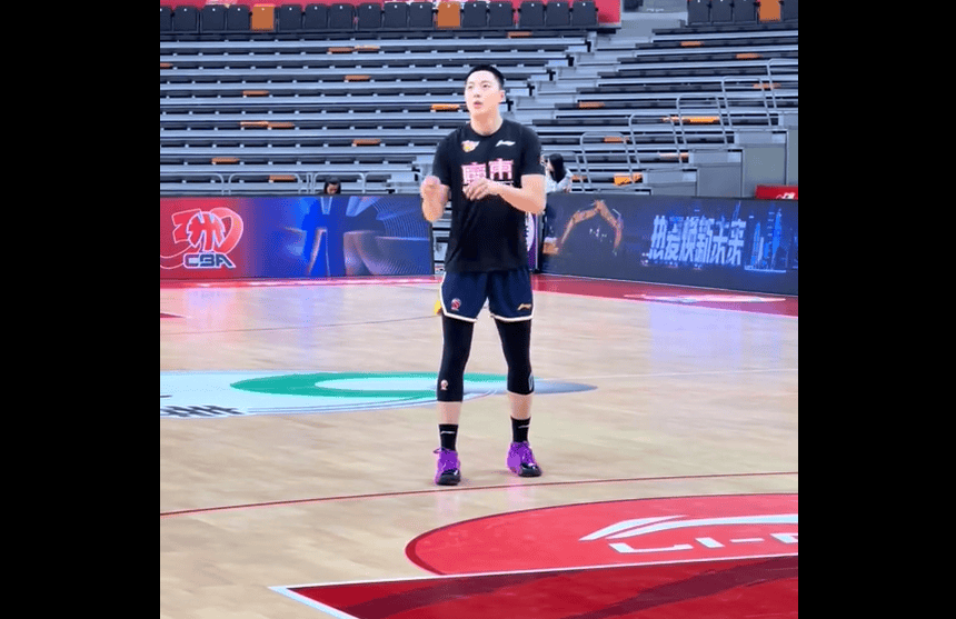 今晚能上场吗?广东男篮胡明轩赛前踩场热身训练片段