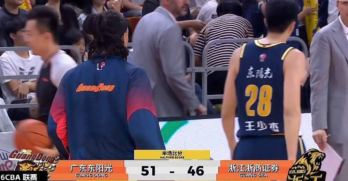 CBA常规赛:奎因10分&塔克20分,广东半场51-46领先广厦