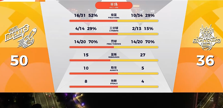 CBA常规赛:法尔13分&珀塞尔7中1拿5分,宁波半场50-36山东