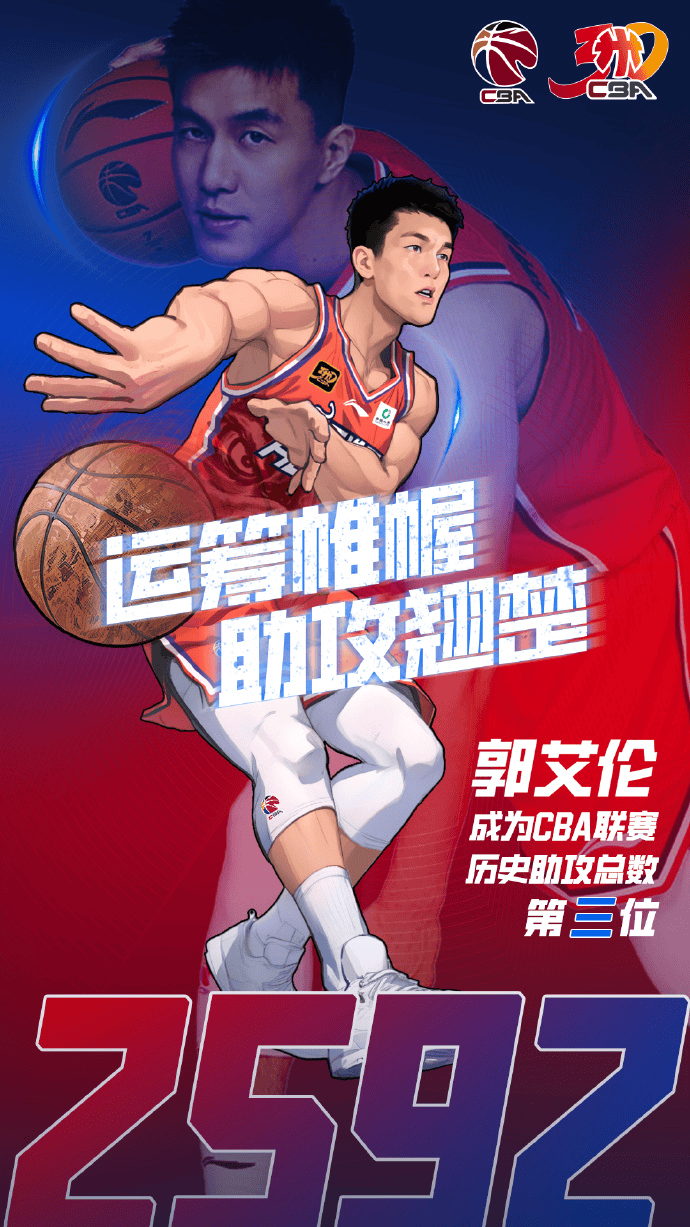 历史总助攻数第三位!CBA联赛官方分享海报祝福郭艾伦
