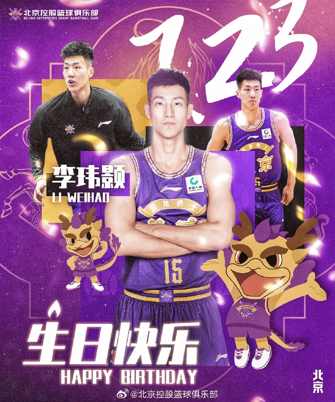 生日快乐!北控男篮祝福李玮颢在新的一岁里继续进步