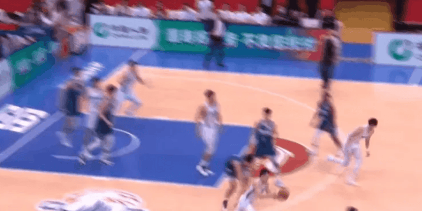 [赛场速递]邹阳突破威姆斯,顶着周琦防守反手拉杆打进