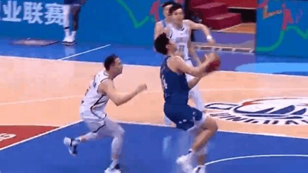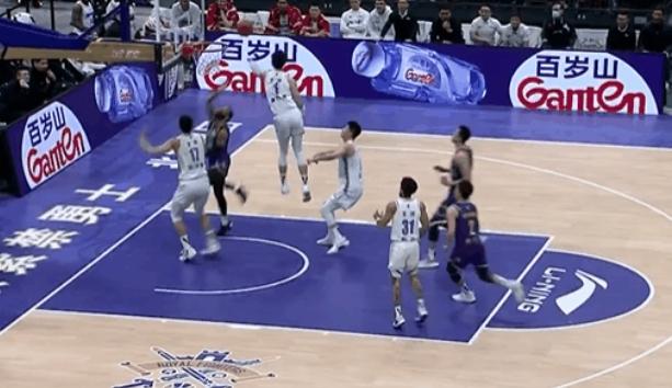 桑普森欲隔扣曾凡博未得手,随后王少杰挑战曾凡博造成犯规