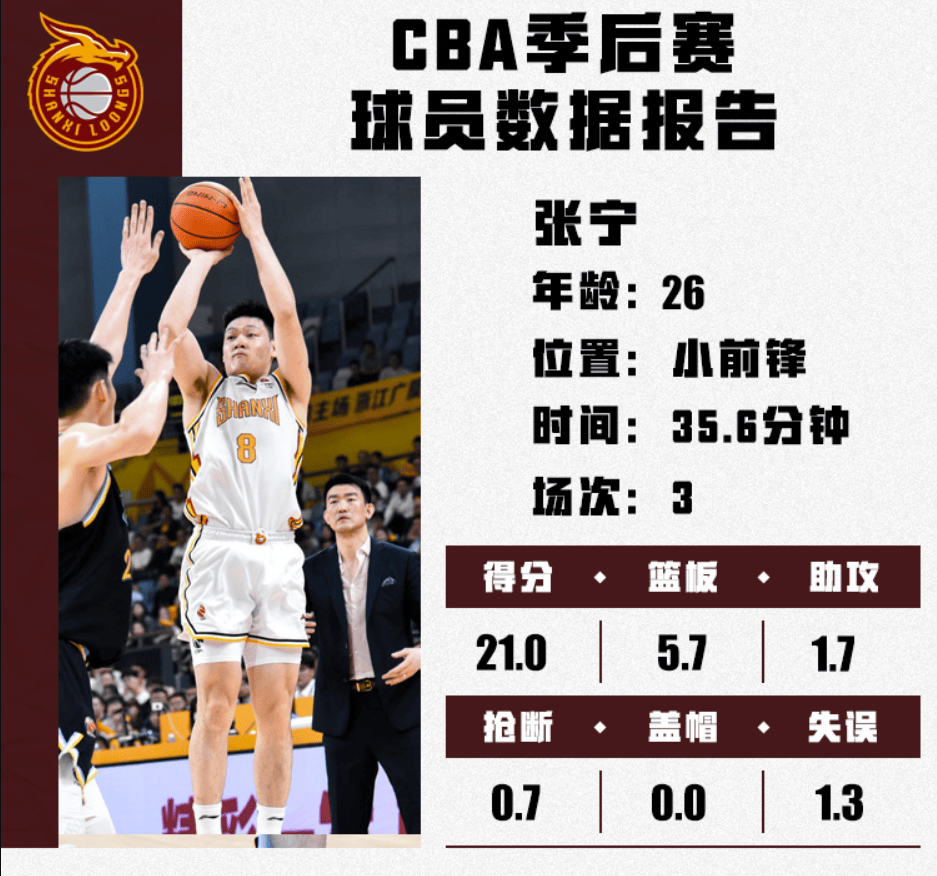 季后赛张宁产量增加同时效率还有所提升,护框水准有待提升