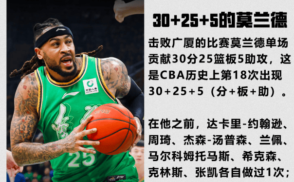 状态火热!莫兰德贡献CBA历史上第18个单场30+25+5