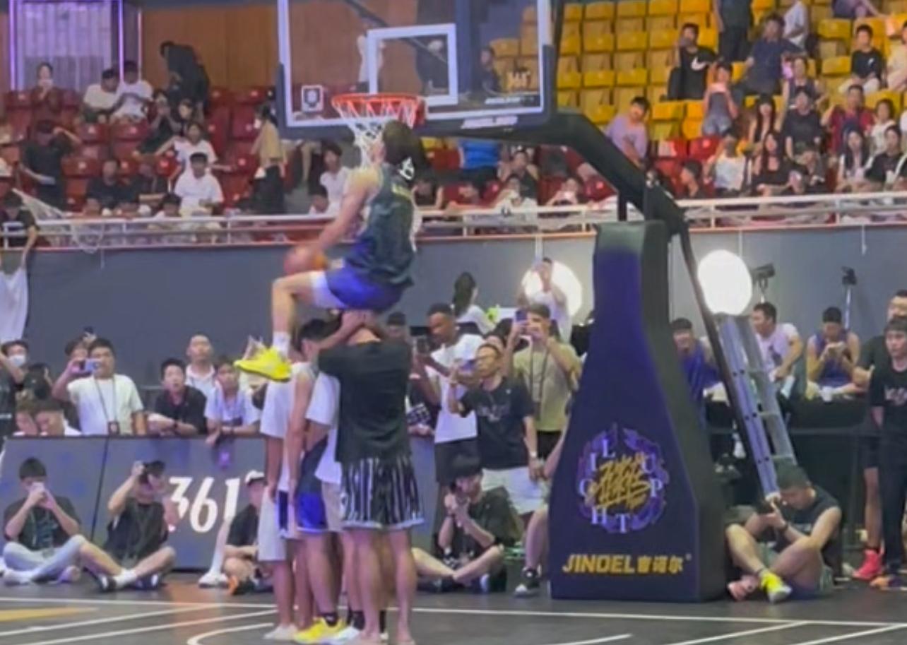 哥们还能飞!杨政尝试滑翔暴扣失败,随后再次扣篮成功